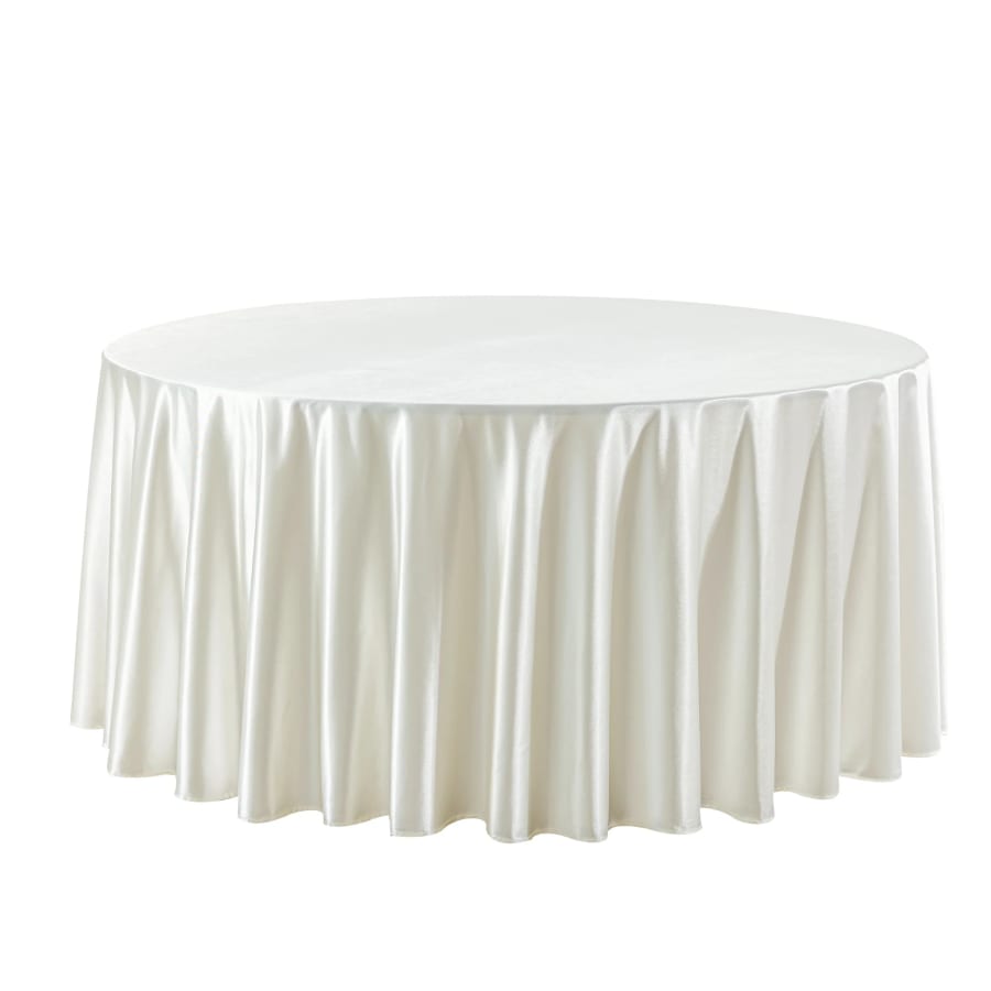 Ivory symbolizes warmth, glamor, and luxury. It offers a softer alternative to stark white, adding warmth and a sense of romance to events. It lends its timeless and sophisticated charm, ideal for weddings, birthdays, and anniversaries. An ivory satin tablecloth blends with a range of themes and color schemes, acting as a beautiful base that complements floral arrangements, decor accents, and lighting.